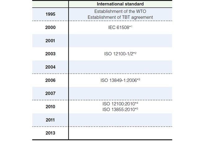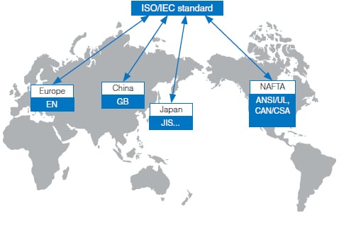 By making facilities and machines conform to ISO/IEC standards, it became possible to, in general cases, make these facilities and machines conform to the technical criteria of various countries in order to increase commonality around the world and thus allow for fewer restrictions to worldwide trade. (Requirements unique to each country are also recognized, so the above is an explanation of the principle.)