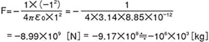 According to this formula, the acting force is approximately 1 million tons, which is equivalent to a force that could lift a weight of 1 million tons. A coulomb [C] is too large a unit to use in realistic situations, so the amount of charge when a 1 [m] square polymer film is frictionally charged, which is around 10-5 [C], is used.
