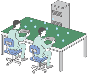 If the object is grounded in this state, the static electricity will escape from the object. Also, a large amount of moisture in the air leads to static electricity naturally escaping along the airborne moisture. This means that humidity control is an effective way to create an environment where it is difficult for static electricity to accumulate.