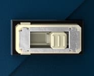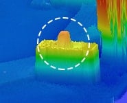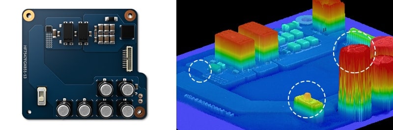 Multiple stripe patterns are projected at high speed. Light reflected from the target is analysed in real time by the ultra-high-speed CMOS imaging sensor and a high-speed processor to generate a 3D image.