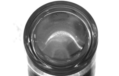 The fluorescent light is refracted inside of the bottle, which makes inspections of the bottle opening difficult.